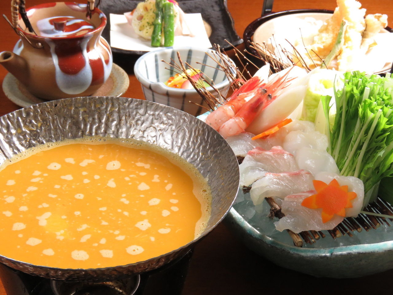その出汁で海鮮ネタなどをしゃぶしゃぶする