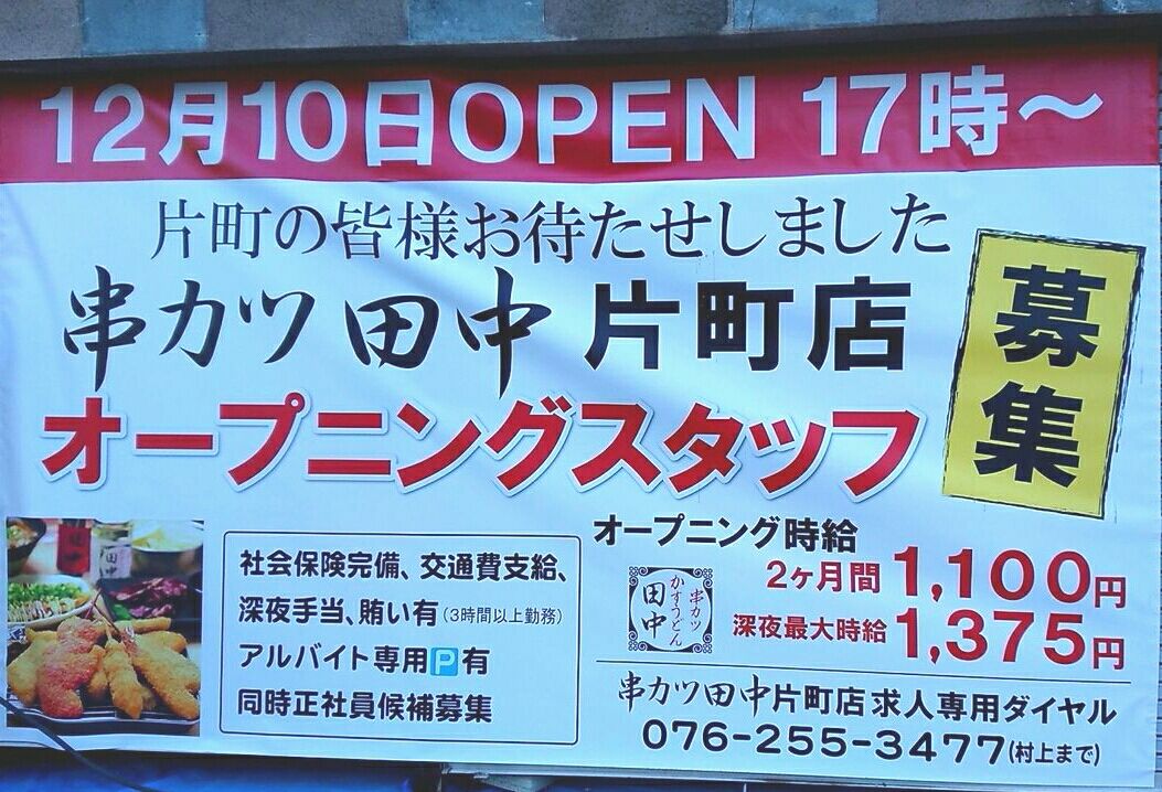 『串カツ田中 片町店』は12月10日!