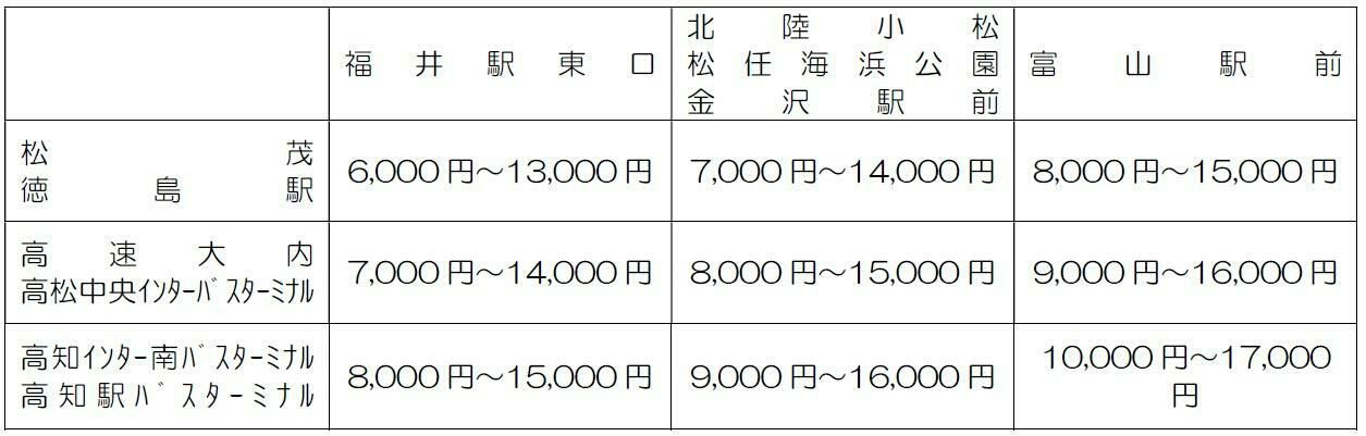 運行区間:富山・金沢・福井~徳島・高松・高知