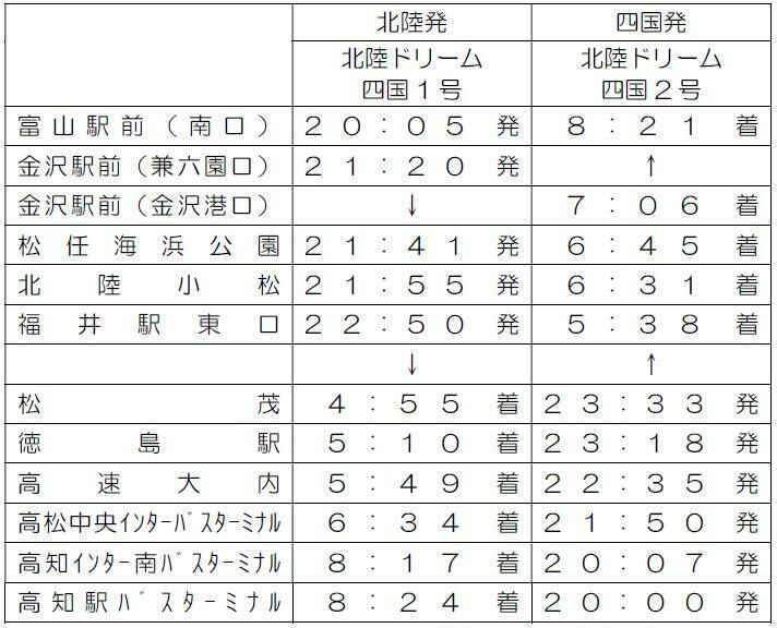 夜行高速バス『北陸ドリーム四国号』を