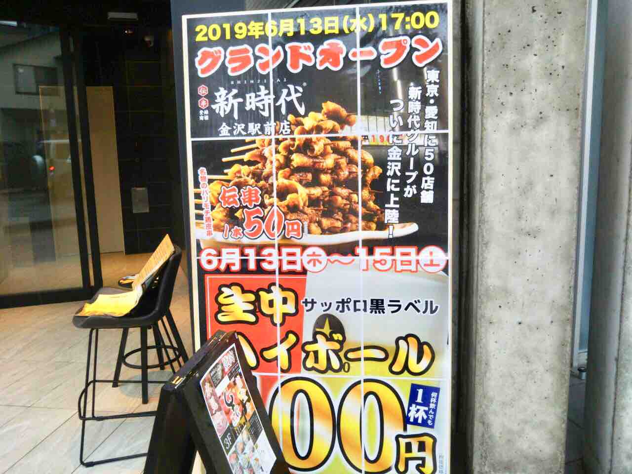 北陸初出店!伝串1本50円!生中190円!本町に『新時代 金沢駅前店』なる人気居酒屋チェーン店がオープンするらしい。