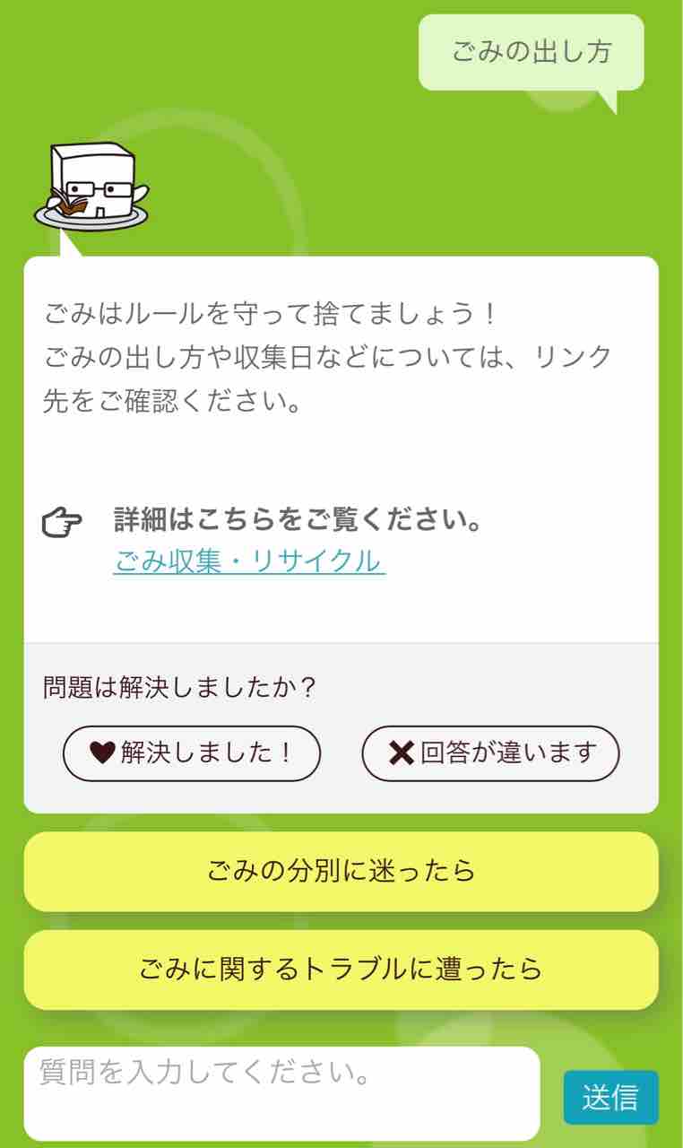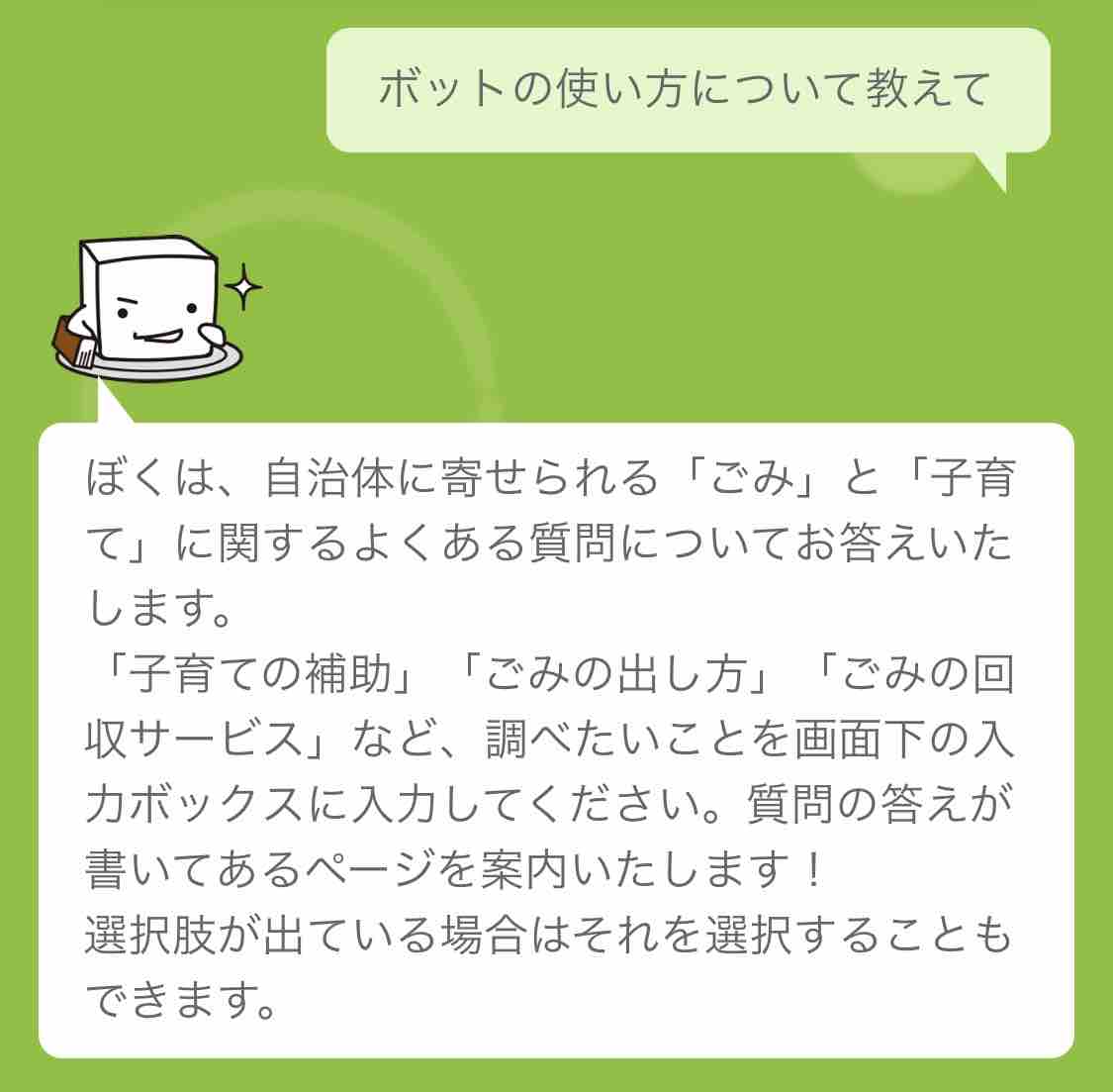 ボットの使い方や、ごみの出し方、