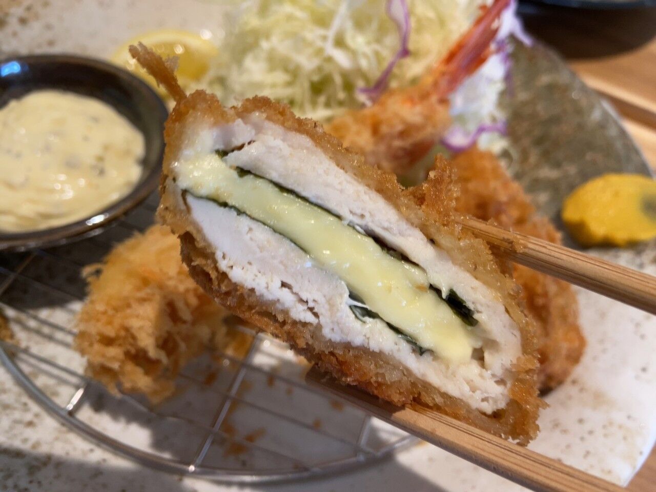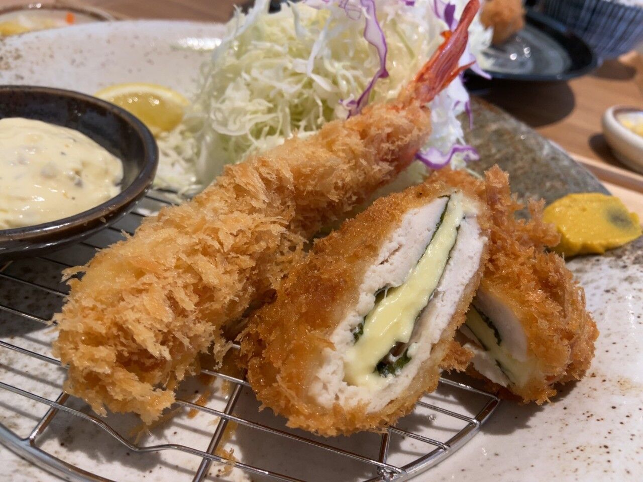 『彩かつ盛り合わせ チーズささみと大海老フライ』