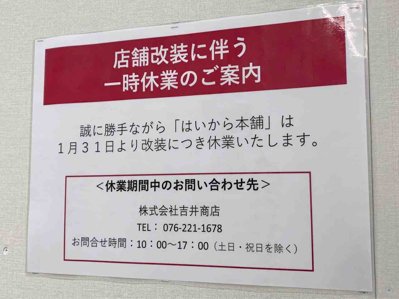 『はいから本舗』は改装につき休業中。