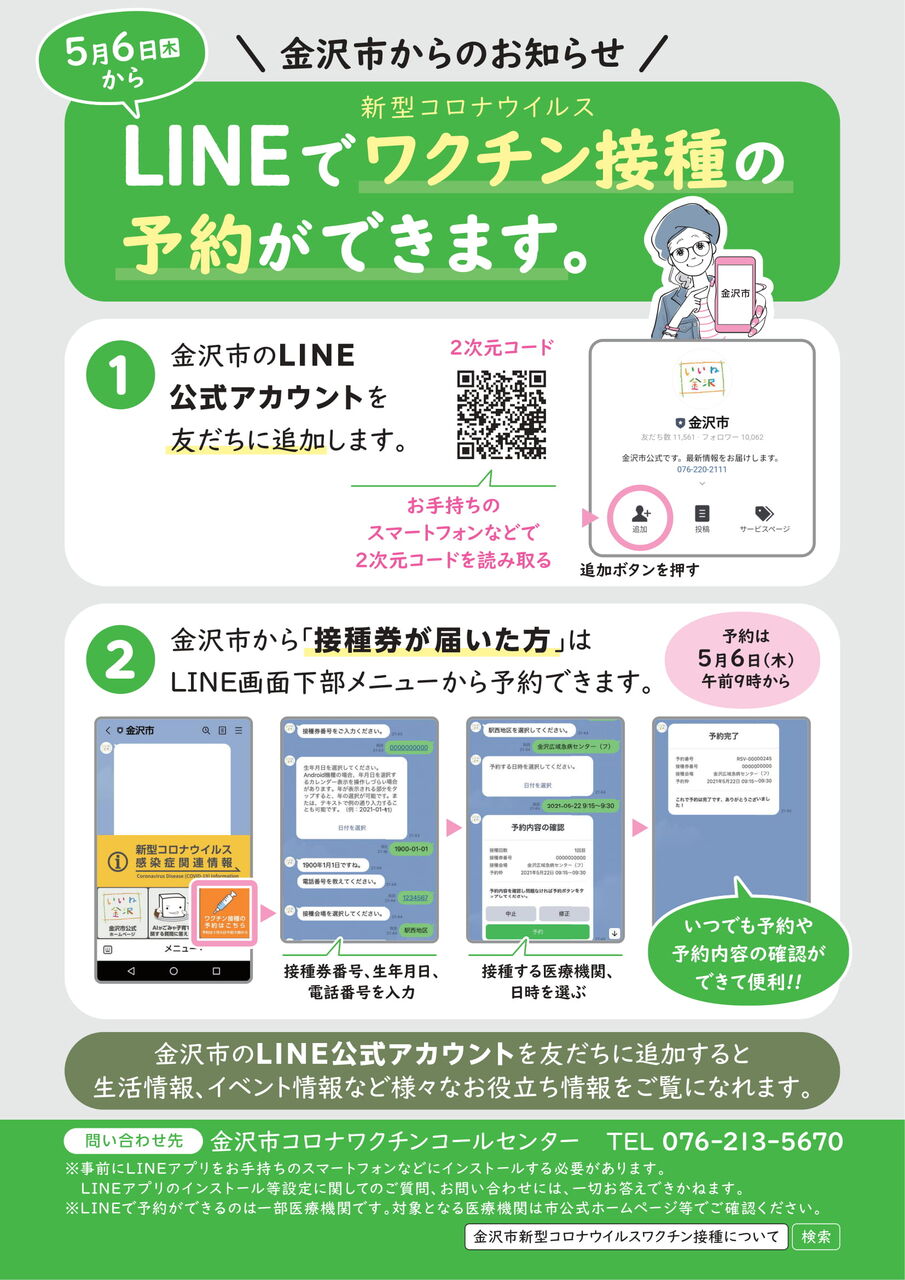 ①金沢市のLINE公式アカウントから予約。