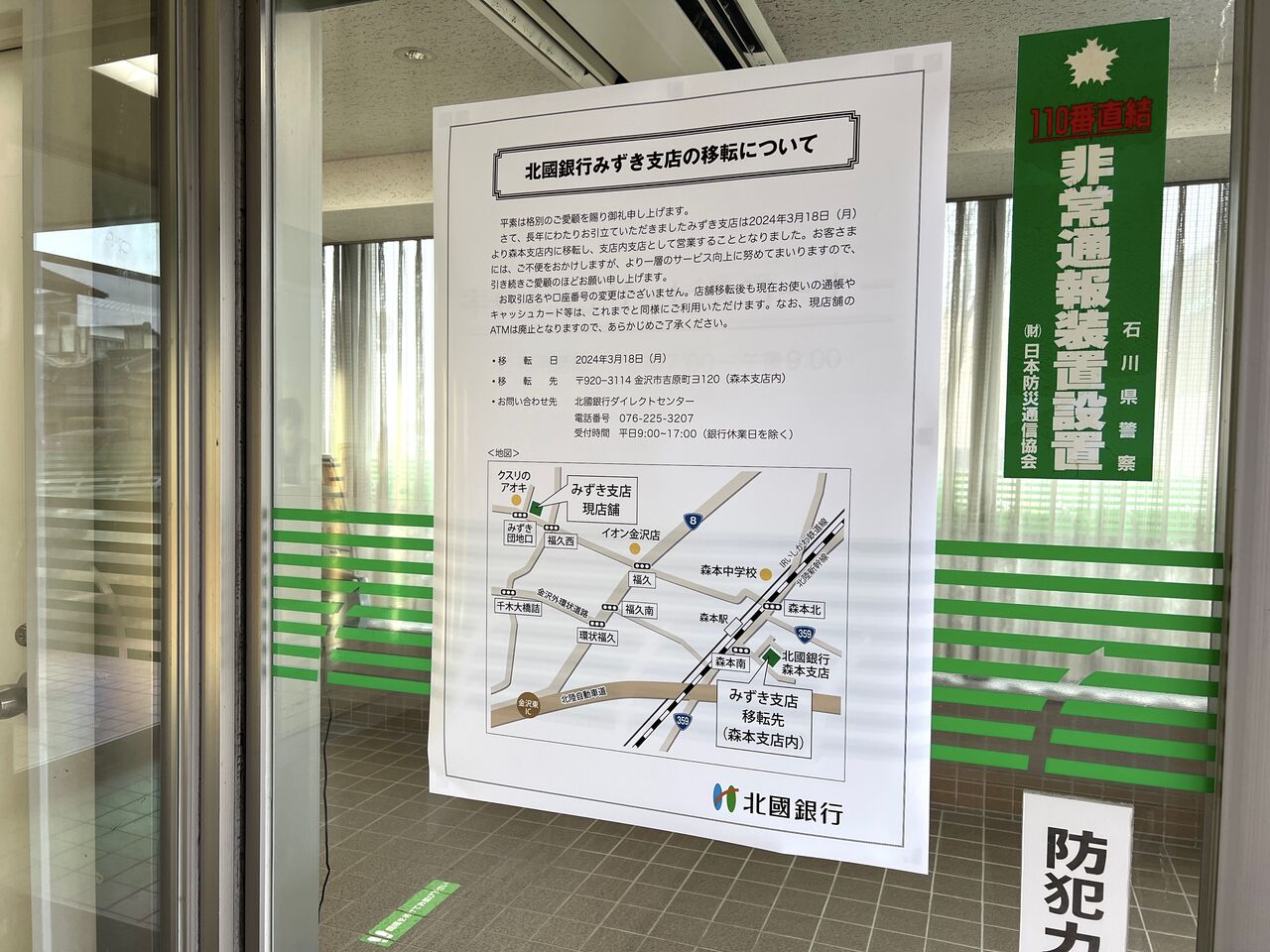 移転先:北國銀行 森本支店