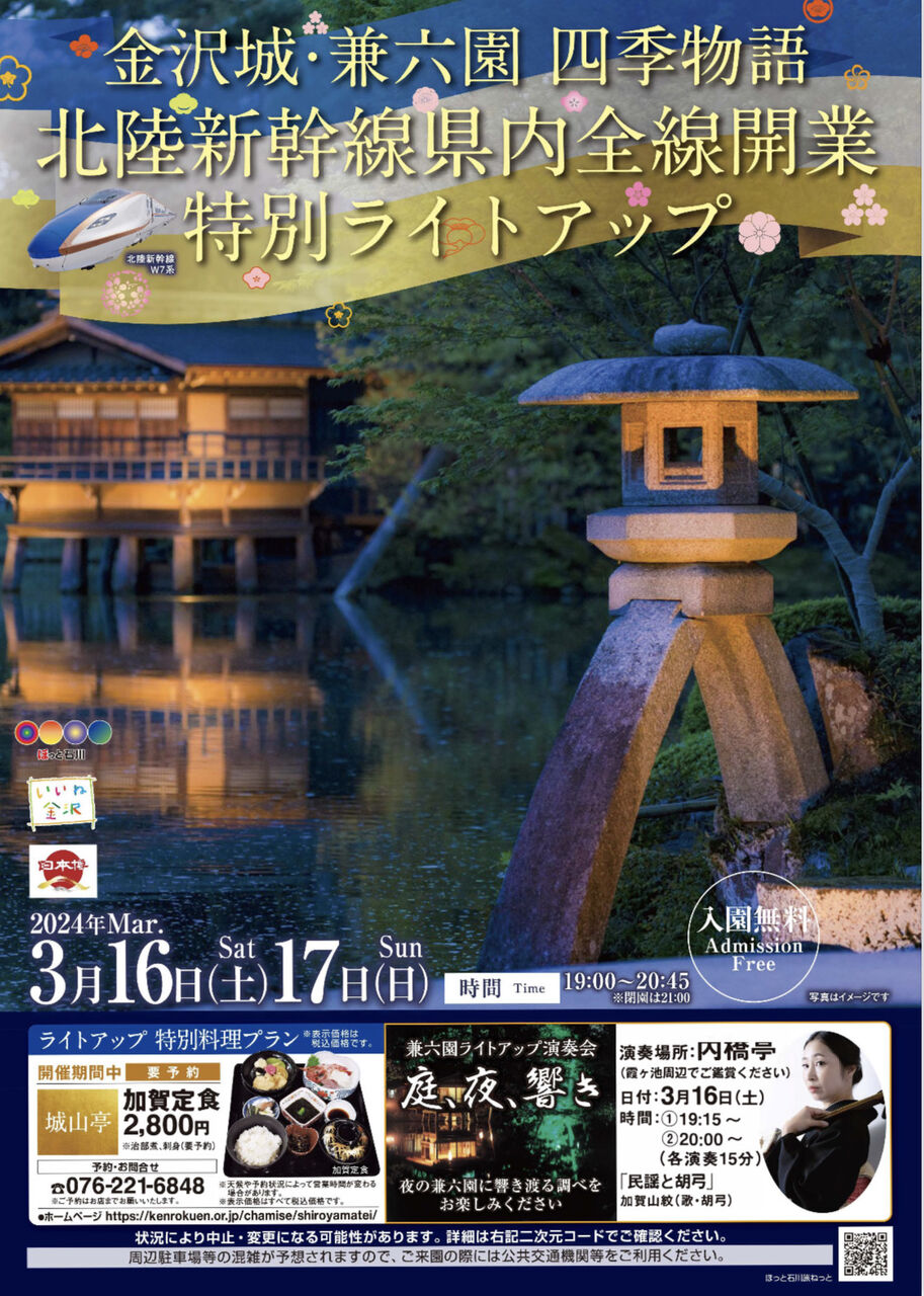 イベント名:金沢城・兼六園四季物語~北陸新幹線県内全線開業特別ライトアップ~