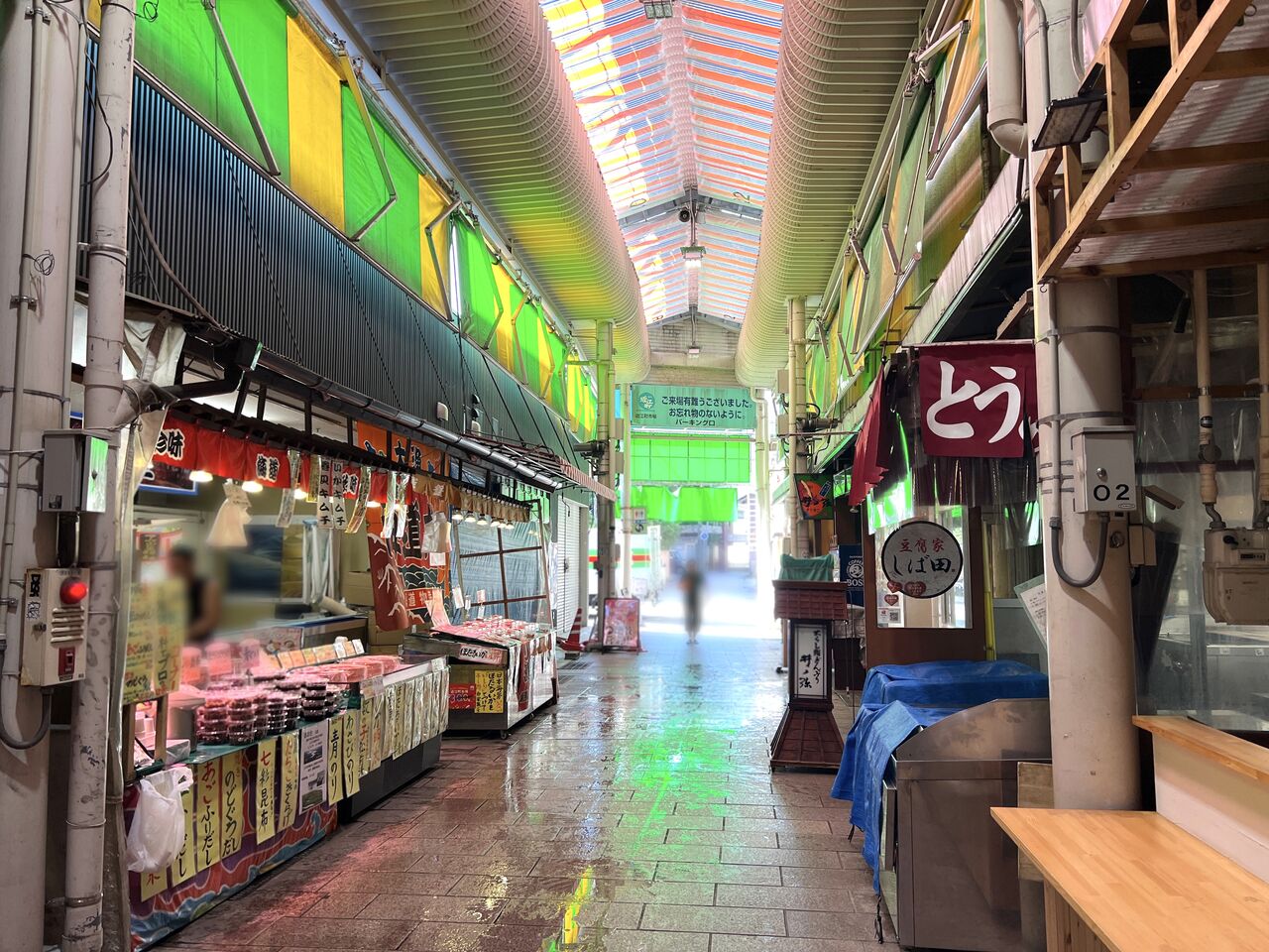 道路から市場アーケード内に入ると…