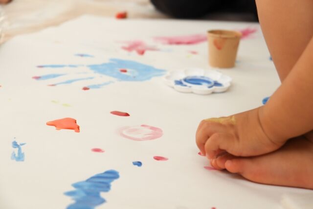 1歳児は手形アートだって。カワイイ。笑