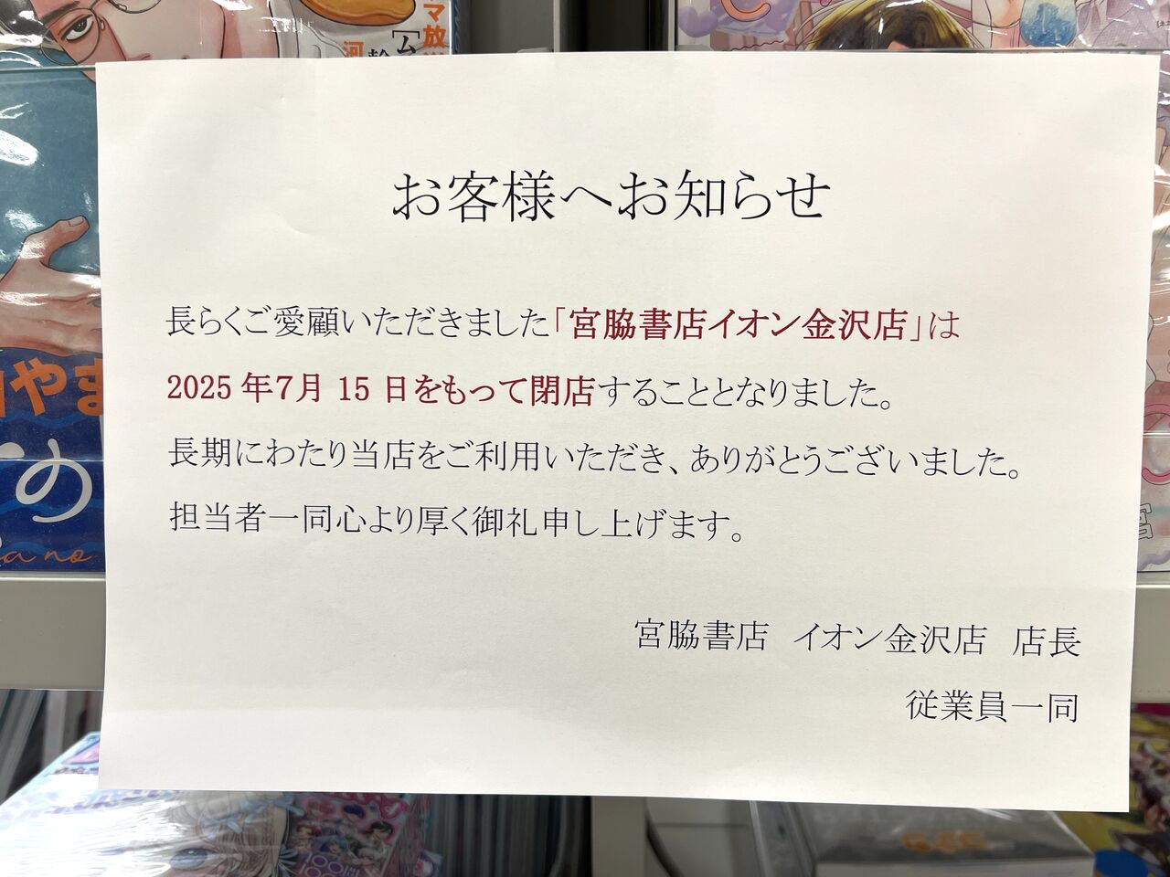 店 名:宮脇書店イオン金沢店