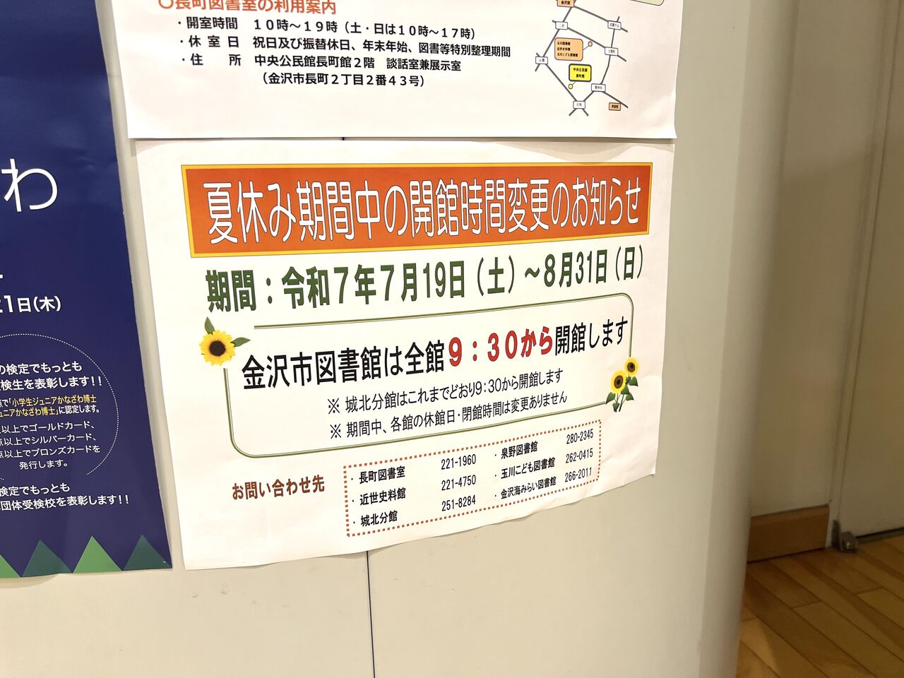 開館時間30分繰り上げは、7月19日〜8月31日。