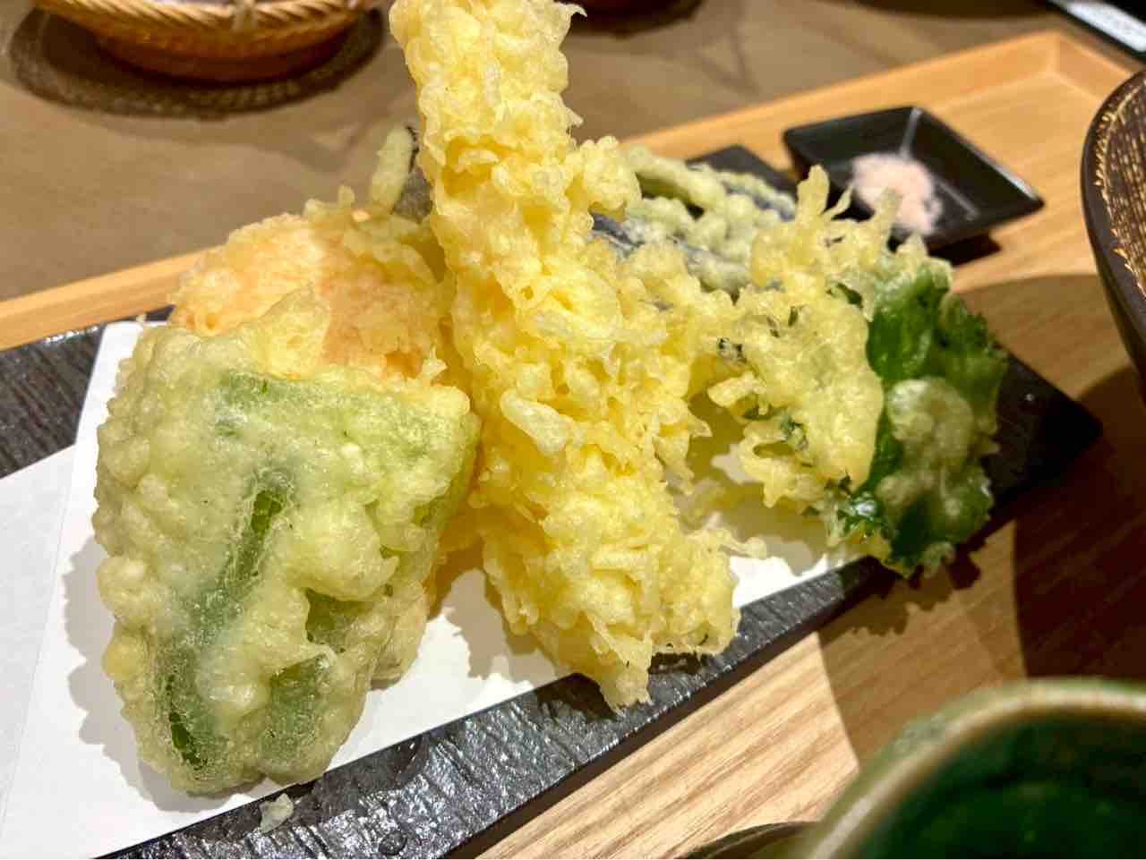 海老と季節の野菜の天ぷら!