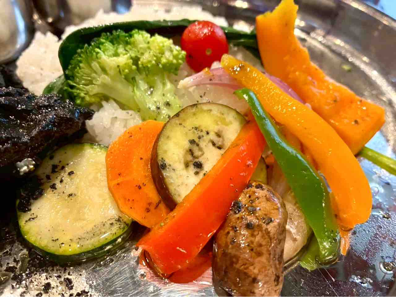 減農薬米の上には温野菜が!