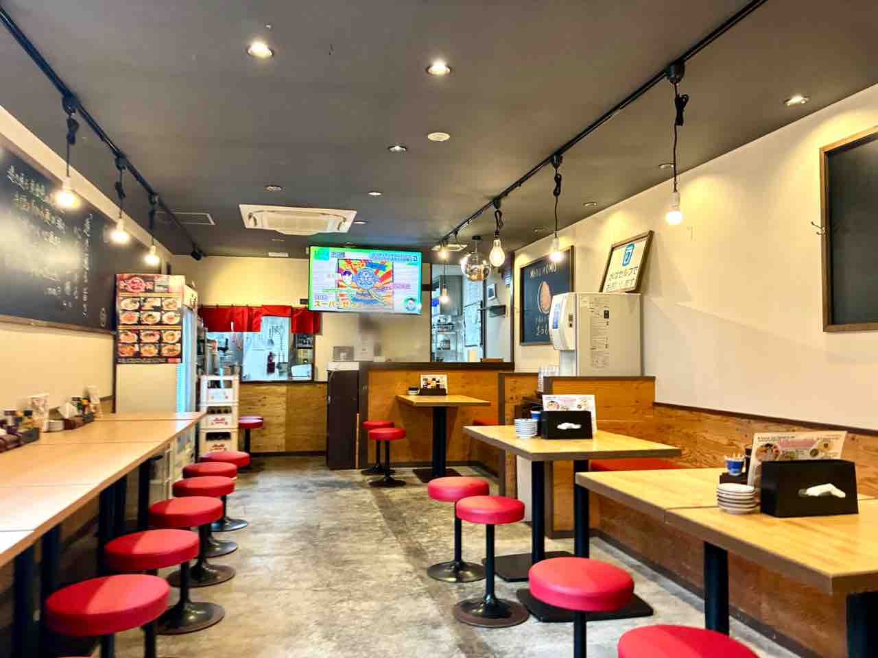 店内は、カウンター、テーブル席。