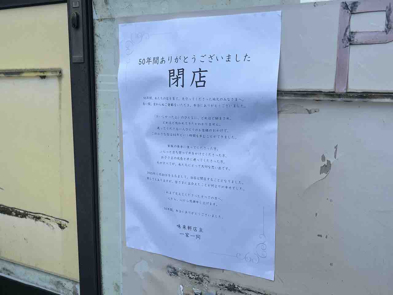 すぐ近くの『味来軒』が閉店してるって~!?