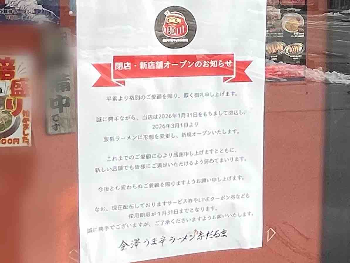 店 名:金澤うま辛ラーメン赤だるま